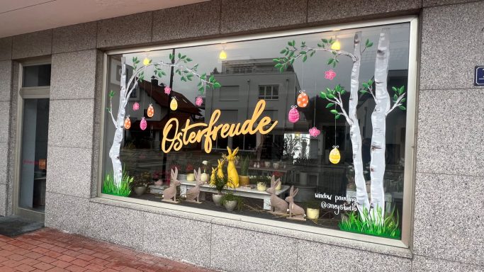 So wirken die Schaufenster nicht nur hell, freundlich und saisonal passend – sie zeigen auch, wie sich Window Painting immer wieder neu verändern und weiterentwickeln lässt.