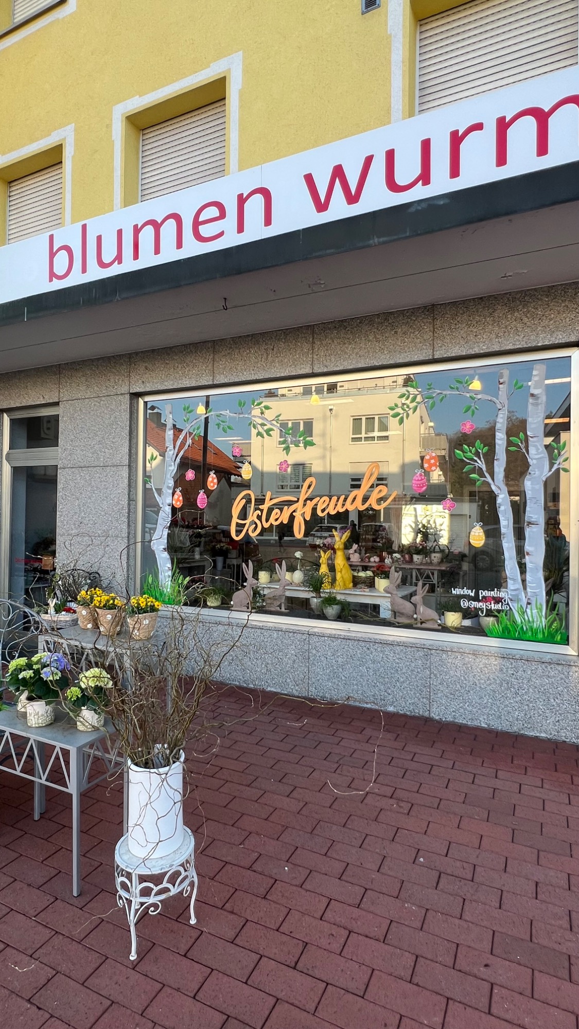 Für den Blumen Wurm in Gilching durfte ich die Schaufenster über mehrere Monate hinweg gestalten und immer wieder passend zur Saison weiterentwickeln.
